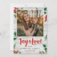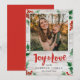 At the bottom of the card, the heartfelt sentiment "joy and love" is elegantly presented in red calligraphy. The words serve as a reminder of the true essence of the season, emphasizing the joyous and loving moments that make the holidays truly special. Above the sentiment, a personalised family signature adds an extra touch of warmth, letting your loved ones know that this card comes straight from the heart of your family.