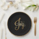 “Joy” Black Gold Script Elegant Holiday Paper Plate