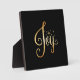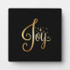 “Joy” Black Gold Script Elegant Holiday Plaque
