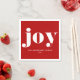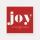 Add a festive accent to your holiday party tablescape with these customisable Christmas paper napkins. They feature the word "JOY" in red bold typography. Personalise by adding your details. These custom holiday paper napkins are perfect as a personalised gift. Matching items are available.