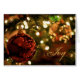 Close up of Red Christmas ball that adorns a beautiful holiday tree. Inside reads Merry Christmas and Happy New Year