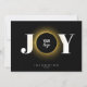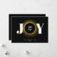 An elegant black and gold "JOY" business corporate Christmas card. Customize this classy Xmas card with your logo, company name and year, greeting and QR Code.