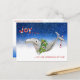 This cartoon dolphin has a holiday wreath on for Christmas in an ocean of stars. Card reads "Joy" on front And below "...it's the porpoise of life"