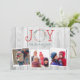 Vibrant colored letters, trees, holly and cancy canes in a cheerful message suitable for a non-religious holiday greeting. I especially liked it on the black background which made the design pop.
