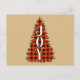 A lovely lumberjack plaid Christmas tree postcard, the word "Joy" is written across in white letters. Personalise yours today!