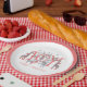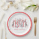 Whimsical unique illustrated JOY typography Christmas winter holiday party paper plates. Spread some cheer with this festive holiday party plate style. A unique whimsical cute collage of painted woodland and safari animals. Red, blue and grey on white. Quirky cute type and a spray of boughs. Make this holiday CHEERFUL!