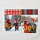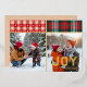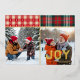 This country plaid Christmas card features two family photos with the word "JOY" and your family name printed in gold at the bottom right. Above each photo is a rectangle of cozy plaid, and the back has a beige and white dotted pattern. Upload two of your own photos, which are slightly taller than they are wide. The photo on the right needs a darker area at the bottom to help contrast with the lettering. This card is a fun and easy way to send your Christmas sentiment and share smiles without having to write on each card. Choose the envelope style you want with the card.
