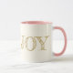 This mug has a matte gold coloured word of "JOY" over off white background.