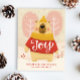 "Joy" Christmas Postcard with cute funny cartoon woodland bear animal in pink blush red colours for winter holidays.
