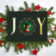 Joy Dog Photo Dark Green Christmas Wreath Gold Foil Holiday Postcard