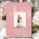 Joy Elegant Christmas Floral Typography Photo Holiday Card