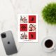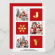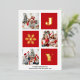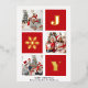 JOY Elegant Gold Snowflakes Modern Script on festive Red colour 3 Photo Collage Real Foil Holiday Card. Send Holiday Greetings to your loved ones with this festive and Modern Holiday Card. All the texts are pre-arranged for you to personalise easily and quickly with your own details. Happy Holidays!