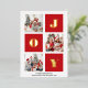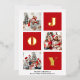 JOY Elegant Gold Snowflakes Modern Script on festive Red colour 3 Photo Collage Real Foil Holiday Card. Send Holiday Greetings to your loved ones with this festive and Modern Holiday Card. All the texts are pre-arranged for you to personalise easily and quickly with your own details. Happy Holidays!