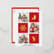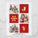 JOY Elegant Gold Snowflakes Modern Script on festive Red colour 3 Photo Collage Real Foil Holiday Postcard. Send Holiday Greetings to your loved ones with this festive and Modern Holiday Card. All the texts are pre-arranged for you to personalise easily and quickly with your own details. Happy Holidays!