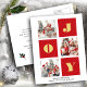 JOY Elegant Gold Snowflakes Modern Script 3 Photo Collage on Red and Green Festive Postcard. Send Holiday Greetings to your loved ones with this minimalist and modern Christmas Holiday Postcard. All the texts are pre-arranged for you to personalise easily and quickly with your own details. Happy Holidays!