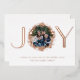 Easy to use template so you can personalized this elegant real foil holiday card with your own photograph and message and order your prints! Design with phrase "JOY" with delicate wreath as letter "O" in foil, and with your photograph inside. No need to add a circular image, Zazzle will automatically do it for you and will add image in the correct spot. Three foil color options available, gold, silver or rose gold. Cheerful, elegant and simple design. Back in white.