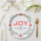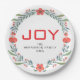Joy Floral Christmas Wreath Family Custom Name Paper Plate