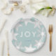 This chic and modern " JOY " christmas and holiday paper plate features a light blue / robbin egg blue background with white and grey frosted snowflakes. Personalise it for your needs. You can find matching products at my store.