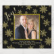 Joy! Gold & Black Holiday Photo Festive Snowflakes Liquor Bottle Label