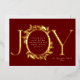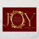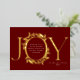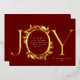 This design is ready for the festive season. A bold red background and hand drawn foliage wreath in gold foil set off this design. A wonderful message of joy for the holiday season and a photo area on the back, make this card perfect for Christmas.