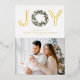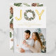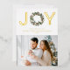 This winter gold foil joy holiday card features hand-painted watercolor greenery and pinecones arranged as a beautiful wreath with a family photo. The back includes a matching pattern. Find matching items in the Pinecone and Greenery Christmas Holiday collection.