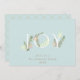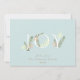 This elegant christmas / holiday card features a word "JOY" with foliages / greeneries and berries on mint green background. The reverse side features faux gold check pattern on mint green background. Change the background colour and personalise it for your needs.