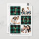 JOY | Green Plaid Photo Collage Christmas Holiday Postcard