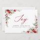 This Happy Holidays greeting card featuring the elegaht handwritten red word "JOY" watercolor greenery twigs and red forest berries. The reverse side of this happy holidays card is red with botanical frame . Add your text and photo and send it to your loved ones.