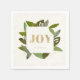 This elegant and chic personalised christmas / holiday paper napkin features a word " JOY " in faux foil gold with foliages / greeneries, white berries, and snow on icory white background. Change the background colour and personalise it for your needs. You can find matching products at my store.