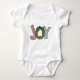 Christmas T-shirts, mugs, cards, stickers, tote bags, magnets, and other Christmas holiday clothing and gift items featuring bright holiday text that reads "JOY".