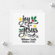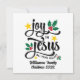 Personalized JOY IN JESUS Christian Christmas Holiday Card with bold black script typography and holly. Ideal personalized greeting card during the festive season, with a strong Christmas message of joy in Jesus all year round. You can PERSONALIZE with your family or group name and year on the front, and personalize your message on the reverse. Matching gifts available.