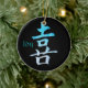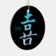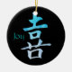 The Japanese Kanji symbol for happiness or joy with additional text. Shades of aqua on black background. Personalise on the back
