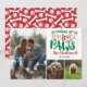 Joy Love Paws Christmas Dog Red Green 3-Photo Holiday Card