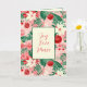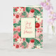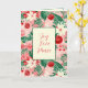 "Joy Love Peace" red script holiday greeting. The bright pink and red floral Christmas pattern is based on a retro design like those popular in the last midcentury. Along with lovely white flowers are whimsical baubles and ornaments. Also emerald green leaves and matching borders. All the text is editable. Be sure to change names and date to those you want to include.