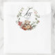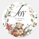 Joy Merry Christmas Floral Wreath Family Name Classic Round Sticker