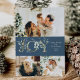 JOY Modern 3 Photo Gold Greenery Blue Holiday Card