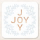Joy | Modern And Elegant White Christmas Square Paper Coaster