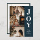 Joy Modern Blue Christmas 3 Photo Collage Holiday Postcard