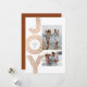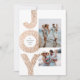 A festive flurry JOY in faux bronze frames two photos on this unique Christmas card. Perfect for sending holiday greetings to family and friends, it features a vertical and a horizontal photo on a white background. The back of the card is a matching bronze colour speckled with a coordinating white snow pattern. This design is available in other colours and also as a digital Christmas card download.