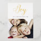 A stylish modern design featuring GOLD JOY lettering, wishing your loved ones in style. Modern and stylish. Your photo on the back or current backing pattern. Your photo on the front. JOY modern holiday card calligraphy lettering.