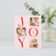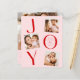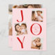 Share holiday joy with this modern Christmas photo card featuring the word ‘JOY’ in bold red letters. The design includes three custom photos placed around the letters, with the O serving as a festive frame for your holiday greeting and family name. A simple, playful layout makes this card a cheerful way to send warm wishes to friends and loved ones. The back of the card features a fourth photo and space for a personal message, perfect for sharing a yearly recap or heartfelt holiday wishes with friends and family. As part of Zazzle's budget selection, this sheet doesn't come in standard card sizes. To get this design on a standard card, you can find it in the collection or use the Zazzle Make Machine to transfer it onto your preferred product. View the collection linked on this page for coordinating items or browse our store for more budget Christmas photo cards.