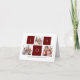 Send customisable and personalised holiday greetings to friends, colleagues and family in simple, chic, elegant and modern three (3) photo collage design festive, natural minimalist style cards! A three photo collage surrounded by the word " JOY " in modern red typography is featured in front. Below the calligraphy features your custom greeting message from your family name in modern typography. Reverse to reveal a beautiful maroon red background.