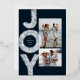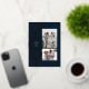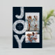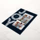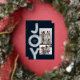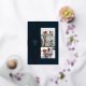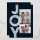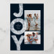 A festive flurry JOY in silver foil frames two photos on this unique Christmas card. Perfect for sending holiday greetings to family and friends, it features a vertical and a horizontal photo on a rich classic navy blue background. The back of the card is a chic matching navy speckled with a coordinating white snow pattern.