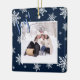 Joy! Navy Blue & White Snowflakes Christmas Photo Ceramic Ornament