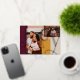 Spread the joy this holiday season with our modern bold joy rose gold foil photo holiday card. Design features "Joy" in bold large elegant rose gold foil letters. Two photo placeholders with the gold foil letter overlay. Bold colour blocks in burgundy, blush, beige, and mustard yellow. Personalise with family signature and year. Design by Moodthogy Papery.