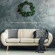 This elegant design, displays a familiar, text word, commonly used, in Holiday phrases, in a Digitalised, window-paned, pattern-with a blended mix, of taupe, blue, black, grey, and white.