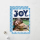 Celebrate the Holiday with this chic, cute and lovely minimalist photo card with your pet featuring the doggie paws " JOY " in sparking snowflakes pattern in baby blue background. Below photo features your custom greeting message and your names & dog name in modern typography. Happy Holidays and Happy New Year !