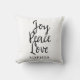Personalised Joy peace love, Inspirational throw pillow. It would make a great addition to any room or as a gift for a family member or friend with the added bonus that you can personalise by adding a name and customising the background colour to a colour of your choice.