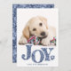 Spread JOY this holiday season with this modern and stylish holiday pet photo christmas card perfect for dog lovers and cat lovers! This pet Christmas card features your favourite photo with the word JOY in a fun playful modern retro typography style and a realistic paw print. Add your photo and your personal message to this elegant fun holiday pet photo design and make it your own one-of-a-kind original holiday card. PHOTO TIP: Pre-crop your photo BEFORE uploading and/or use the CROP tool in the PERSONALIZE section to adjust placement within the template area. For help with design or personalisation or transferring design to another product, contact designer via the chat button. COPYRIGHT © 2022 Judy Burrows, Black Dog Art - All Rights Reserved. JOY Personalised Pet Photo Blue Paw Print Dog Holiday Card