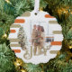 Joy, Photo Template Christmas holiday card ornament with bold modern pattern - add your own photo and text to this Unique Ornament Card from Ricaso - featured with a trendy pattern background in muted sage green and orange tones and a delightful typography text of JOY